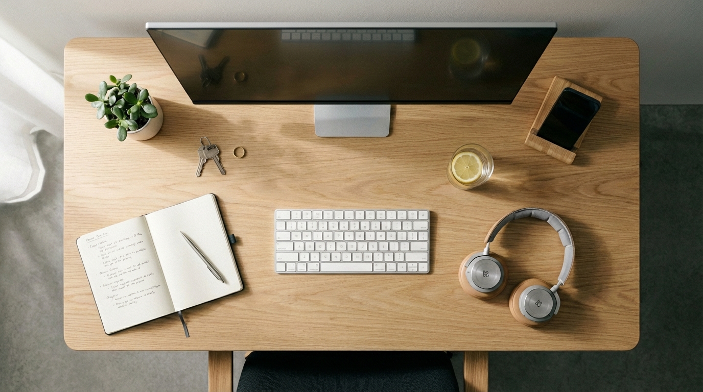 Space: Clear your desk before you sit down. Keep your immediate field of view uncluttered. If you can separate your playing area from where you sleep or eat, do it. The association between a space and a specific mental mode is real and worth building deliberately.